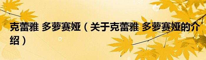 大家好,小安來為大家解答以上的問題。克蕾雅 多蘿賽婭,關于克蕾雅 多蘿賽婭的介紹很多人還不知道,現在讓我們一起來看看吧!