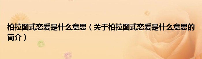 大家好,柏拉圖式戀愛是什么意思,關于柏拉圖式戀愛是什么意思的簡介很多人還不知道,現在讓我們一起來看看吧!