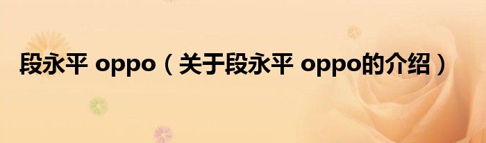 大家好,小安來為大家解答以上的問題。段永平 oppo,關于段永平 oppo的介紹很多人還不知道,現在讓我們一起來看看吧!