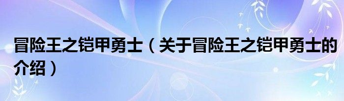大家好,小安來為大家解答以上的問題。冒險王之鎧甲勇士,關(guān)于冒險王之鎧甲勇士的介紹很多人還不知道,現(xiàn)在讓我們一起來看看吧!