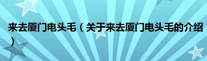大家好,小安來為大家解答以上的問題。來去廈門電頭毛,關(guān)于來去廈門電頭毛的介紹很多人還不知道,現(xiàn)在讓我們一起來看看吧!