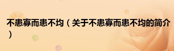 大家好,不患寡而患不均,關于不患寡而患不均的簡介很多人還不知道,現在讓我們一起來看看吧!