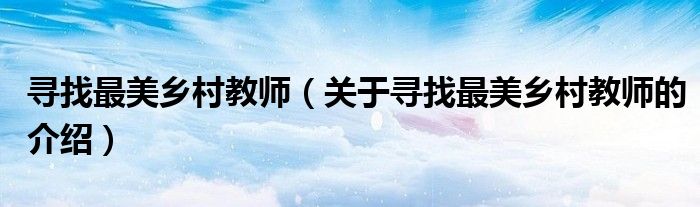 大家好,小安來為大家解答以上的問題。尋找最美鄉(xiāng)村教師,關(guān)于尋找最美鄉(xiāng)村教師的介紹很多人還不知道,現(xiàn)在讓我們一起來看看吧!