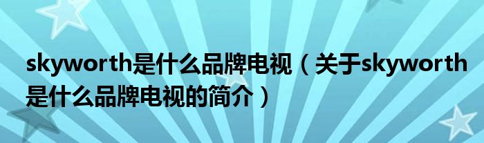 大家好,skyworth是什么品牌電視,關(guān)于skyworth是什么品牌電視的簡介很多人還不知道,現(xiàn)在讓我們一起來看看吧!