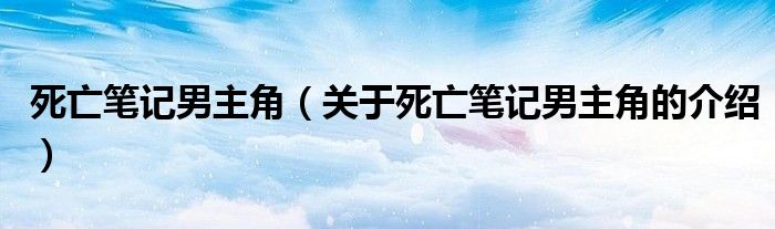 大家好,小安來為大家解答以上的問題。死亡筆記男主角,關于死亡筆記男主角的介紹很多人還不知道,現在讓我們一起來看看吧!