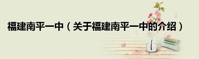 大家好,小安來為大家解答以上的問題。福建南平一中,關于福建南平一中的介紹很多人還不知道,現在讓我們一起來看看吧!
