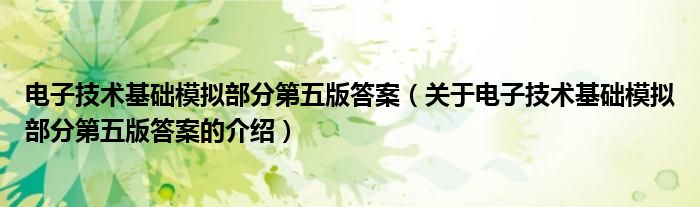 大家好,小安來為大家解答以上的問題。電子技術基礎模擬部分第五版答案,關于電子技術基礎模擬部分第五版答案的介紹很多人還不知道,現在讓我們一起來看看吧!