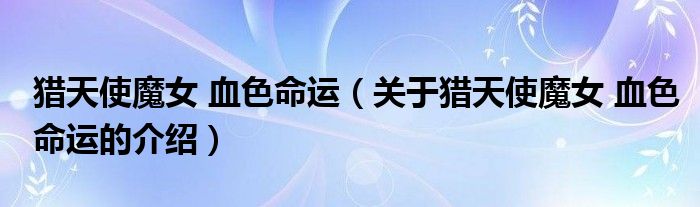 大家好,小安來為大家解答以上的問題。獵天使魔女 血色命運,關于獵天使魔女 血色命運的介紹很多人還不知道,現在讓我們一起來看看吧!