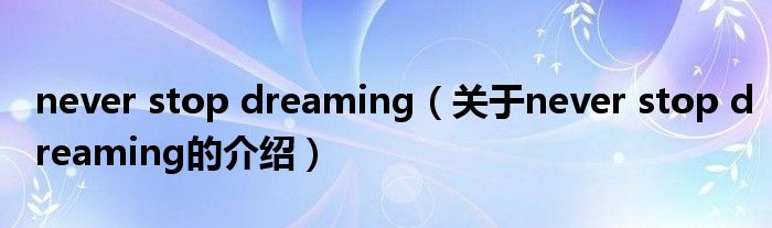 大家好,小安來為大家解答以上的問題。never stop dreaming,關于never stop dreaming的介紹很多人還不知道,現在讓我們一起來看看吧!