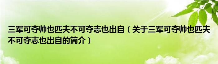 本文關于三軍可奪帥也匹夫不可奪志也出自的簡介就講解完畢,希望對大家有所幫助。