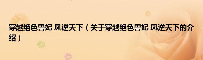 大家好,小安來為大家解答以上的問題。穿越絕色獸妃 鳳逆天下,關于穿越絕色獸妃 鳳逆天下的介紹很多人還不知道,現在讓我們一起來看看吧!