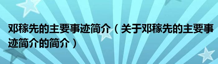 本文關于鄧稼先的主要事跡簡介的簡介就講解完畢,希望對大家有所幫助。