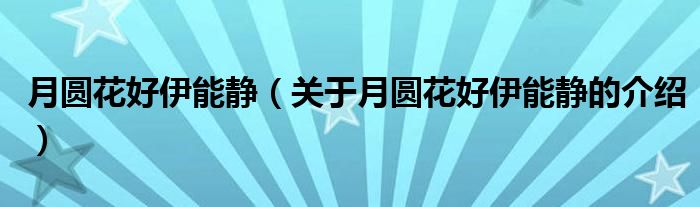 大家好,小安來為大家解答以上的問題。月圓花好伊能靜,關于月圓花好伊能靜的介紹很多人還不知道,現在讓我們一起來看看吧!