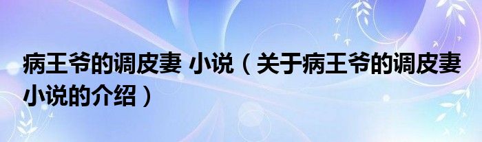 大家好,小安來為大家解答以上的問題。病王爺的調皮妻 小說,關于病王爺的調皮妻 小說的介紹很多人還不知道,現在讓我們一起來看看吧!