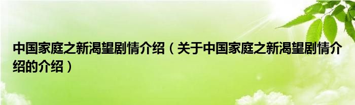 大家好,小安來(lái)為大家解答以上的問(wèn)題。中國(guó)家庭之新渴望劇情介紹,關(guān)于中國(guó)家庭之新渴望劇情介紹的介紹很多人還不知道,現(xiàn)在讓我們一起來(lái)看看吧!