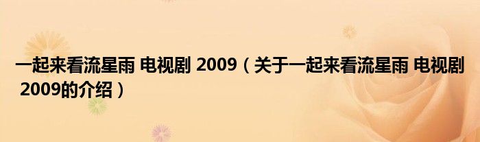 大家好,小安來為大家解答以上的問題。一起來看流星雨 電視劇 2009,關(guān)于一起來看流星雨 電視劇 2009的介紹很多人還不知道,現(xiàn)在讓我們一起來看看吧!