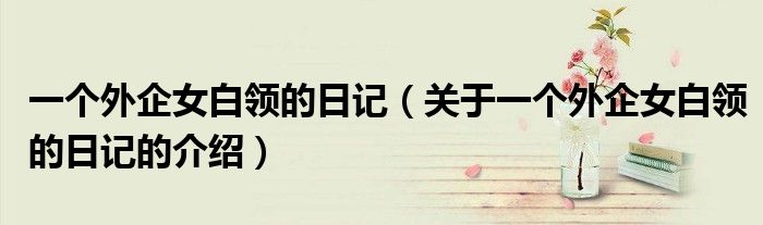 大家好,小安來為大家解答以上的問題。一個外企女白領的日記,關于一個外企女白領的日記的介紹很多人還不知道,現在讓我們一起來看看吧!