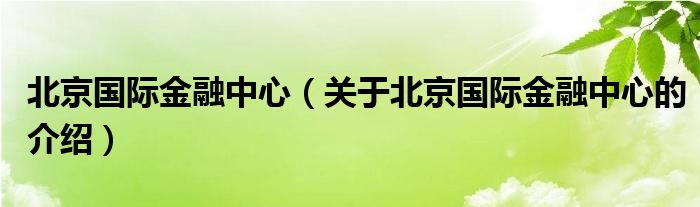 大家好,小安來為大家解答以上的問題。北京國際金融中心,關于北京國際金融中心的介紹很多人還不知道,現在讓我們一起來看看吧!