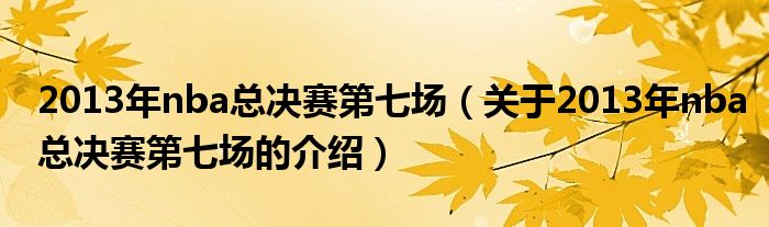 大家好,小安來為大家解答以上的問題。2013年nba總決賽第七場,關于2013年nba總決賽第七場的介紹很多人還不知道,現在讓我們一起來看看吧!
