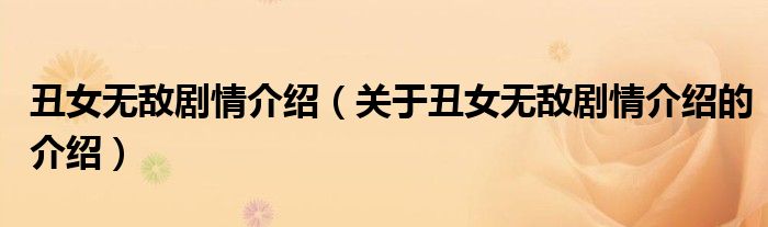 大家好,小安來(lái)為大家解答以上的問(wèn)題。丑女無(wú)敵劇情介紹,關(guān)于丑女無(wú)敵劇情介紹的介紹很多人還不知道,現(xiàn)在讓我們一起來(lái)看看吧!