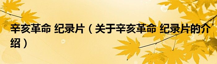 大家好,小安來為大家解答以上的問題。辛亥革命 紀(jì)錄片,關(guān)于辛亥革命 紀(jì)錄片的介紹很多人還不知道,現(xiàn)在讓我們一起來看看吧!