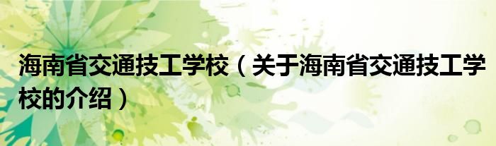 大家好,小安來為大家解答以上的問題。海南省交通技工學(xué)校,關(guān)于海南省交通技工學(xué)校的介紹很多人還不知道,現(xiàn)在讓我們一起來看看吧!