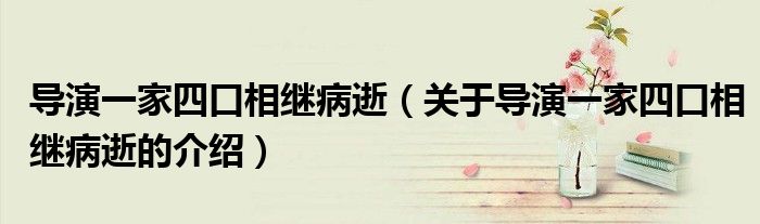 大家好,小安來為大家解答以上的問題。導演一家四口相繼病逝,關于導演一家四口相繼病逝的介紹很多人還不知道,現在讓我們一起來看看吧!