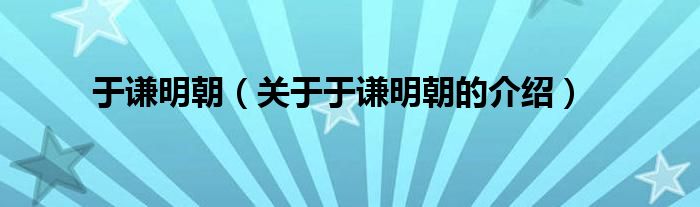 大家好,小安來為大家解答以上的問題。于謙明朝,關于于謙明朝的介紹很多人還不知道,現在讓我們一起來看看吧!