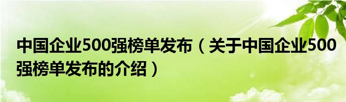 大家好,小安來為大家解答以上的問題。中國企業500強榜單發布,關于中國企業500強榜單發布的介紹很多人還不知道,現在讓我們一起來看看吧!