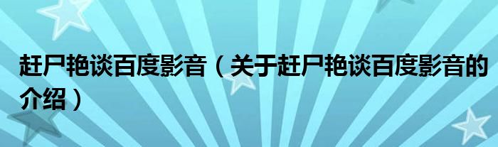 大家好,小安來為大家解答以上的問題。趕尸艷談百度影音,關于趕尸艷談百度影音的介紹很多人還不知道,現在讓我們一起來看看吧!