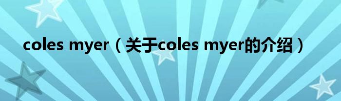 大家好,小安來為大家解答以上的問題。coles myer,關(guān)于coles myer的介紹很多人還不知道,現(xiàn)在讓我們一起來看看吧!