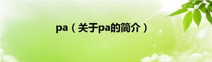 大家好,pa,關于pa的簡介很多人還不知道,現在讓我們一起來看看吧!