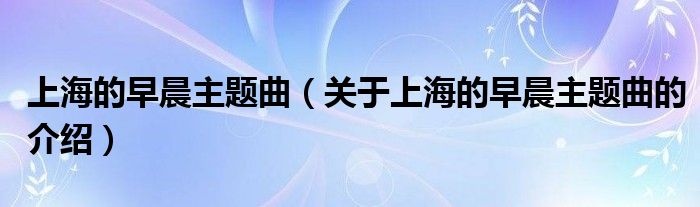 大家好,小安來為大家解答以上的問題。上海的早晨主題曲,關(guān)于上海的早晨主題曲的介紹很多人還不知道,現(xiàn)在讓我們一起來看看吧!