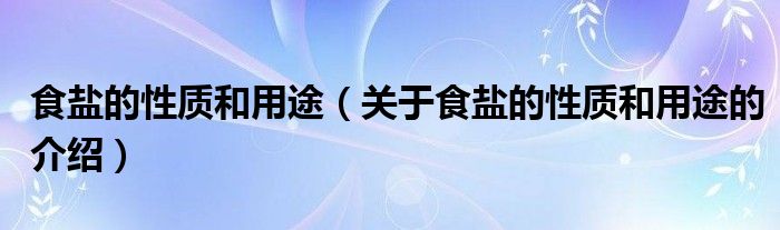 大家好,小安來為大家解答以上的問題。食鹽的性質和用途,關于食鹽的性質和用途的介紹很多人還不知道,現(xiàn)在讓我們一起來看看吧!