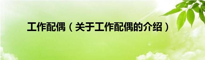 大家好,小安來(lái)為大家解答以上的問題。工作配偶,關(guān)于工作配偶的介紹很多人還不知道,現(xiàn)在讓我們一起來(lái)看看吧!