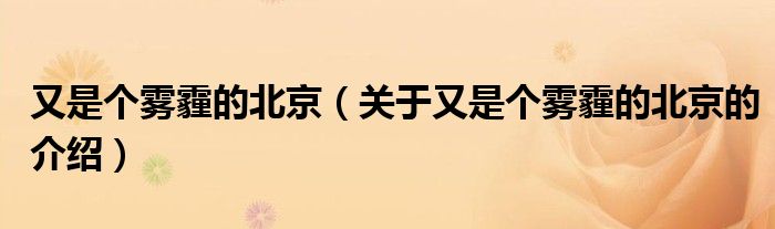 大家好,小安來為大家解答以上的問題。又是個霧霾的北京,關于又是個霧霾的北京的介紹很多人還不知道,現在讓我們一起來看看吧!