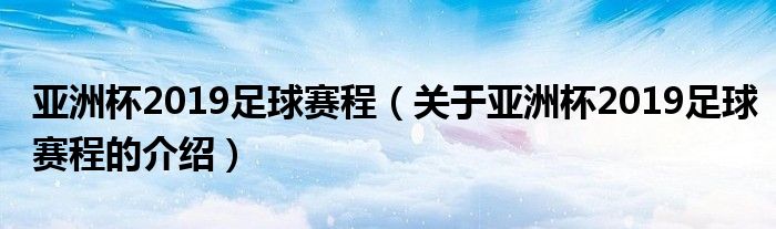 大家好,小安來為大家解答以上的問題。亞洲杯2019足球賽程,關(guān)于亞洲杯2019足球賽程的介紹很多人還不知道,現(xiàn)在讓我們一起來看看吧!
