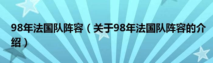 大家好,小安來為大家解答以上的問題。98年法國隊陣容,關(guān)于98年法國隊陣容的介紹很多人還不知道,現(xiàn)在讓我們一起來看看吧!