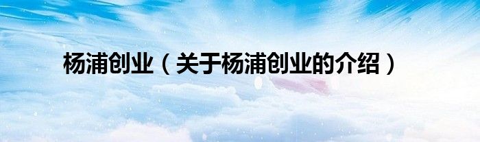大家好,小安來為大家解答以上的問題。楊浦創業,關于楊浦創業的介紹很多人還不知道,現在讓我們一起來看看吧!