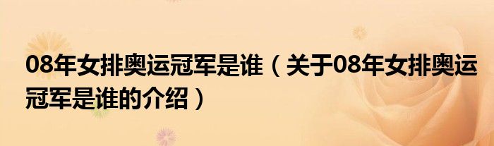 大家好,小安來為大家解答以上的問題。08年女排奧運冠軍是誰,關于08年女排奧運冠軍是誰的介紹很多人還不知道,現在讓我們一起來看看吧!