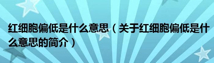 本文關(guān)于紅細(xì)胞偏低是什么意思的簡(jiǎn)介就講解完畢,希望對(duì)大家有所幫助。