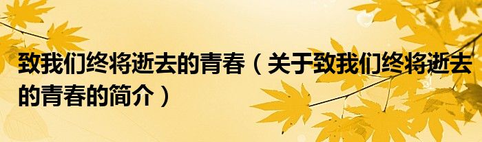 本文關于致我們終將逝去的青春的簡介就講解完畢,希望對大家有所幫助。
