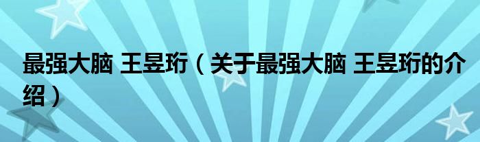 大家好,小安來為大家解答以上的問題。最強大腦 王昱珩,關于最強大腦 王昱珩的介紹很多人還不知道,現在讓我們一起來看看吧!