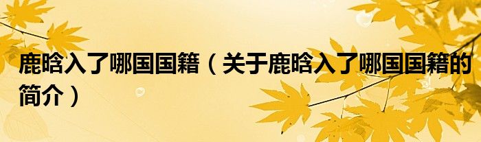 大家好,鹿晗入了哪國國籍,關于鹿晗入了哪國國籍的簡介很多人還不知道,現在讓我們一起來看看吧!
