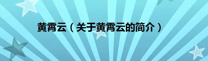 大家好,黃霄云,關于黃霄云的簡介很多人還不知道,現在讓我們一起來看看吧!