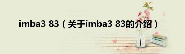 大家好,小安來為大家解答以上的問題。imba3 83,關于imba3 83的介紹很多人還不知道,現在讓我們一起來看看吧!