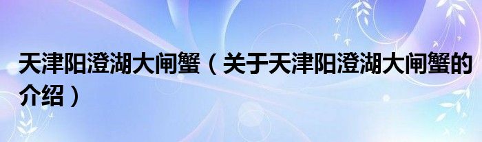 大家好,小安來為大家解答以上的問題。天津陽澄湖大閘蟹,關于天津陽澄湖大閘蟹的介紹很多人還不知道,現在讓我們一起來看看吧!