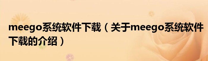 大家好,小安來為大家解答以上的問題。meego系統(tǒng)軟件下載,關(guān)于meego系統(tǒng)軟件下載的介紹很多人還不知道,現(xiàn)在讓我們一起來看看吧!