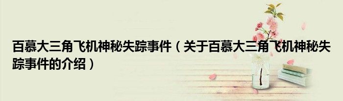 大家好,小安來為大家解答以上的問題。百慕大三角飛機神秘失蹤事件,關于百慕大三角飛機神秘失蹤事件的介紹很多人還不知道,現在讓我們一起來看看吧!