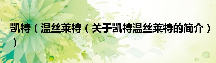 大家好,凱特 溫絲萊特,關于凱特 溫絲萊特的簡介很多人還不知道,現在讓我們一起來看看吧!